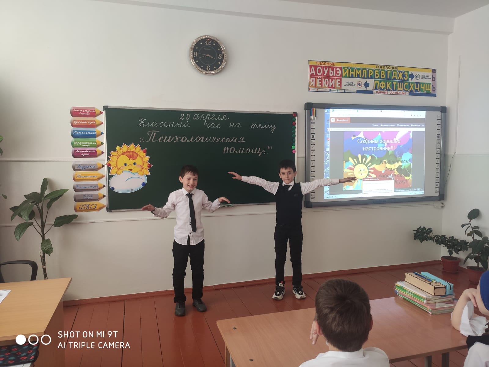 18.04.2022В рамках "Недели пихологии", с целью развития коммуникативных навыков учащихся, создания условий, позволяющих обеспечить взаимную поддержку обучающихся, в 1-4 классах проведены классные часы "Психологическая помощь", тренинговые занятия "Властелина своих эмоций". В ходе мероприятия учащиеся выполняли упражнения "Знакомство с эмоциями", "Тренируем эмоции", "На что похоже настроение?".