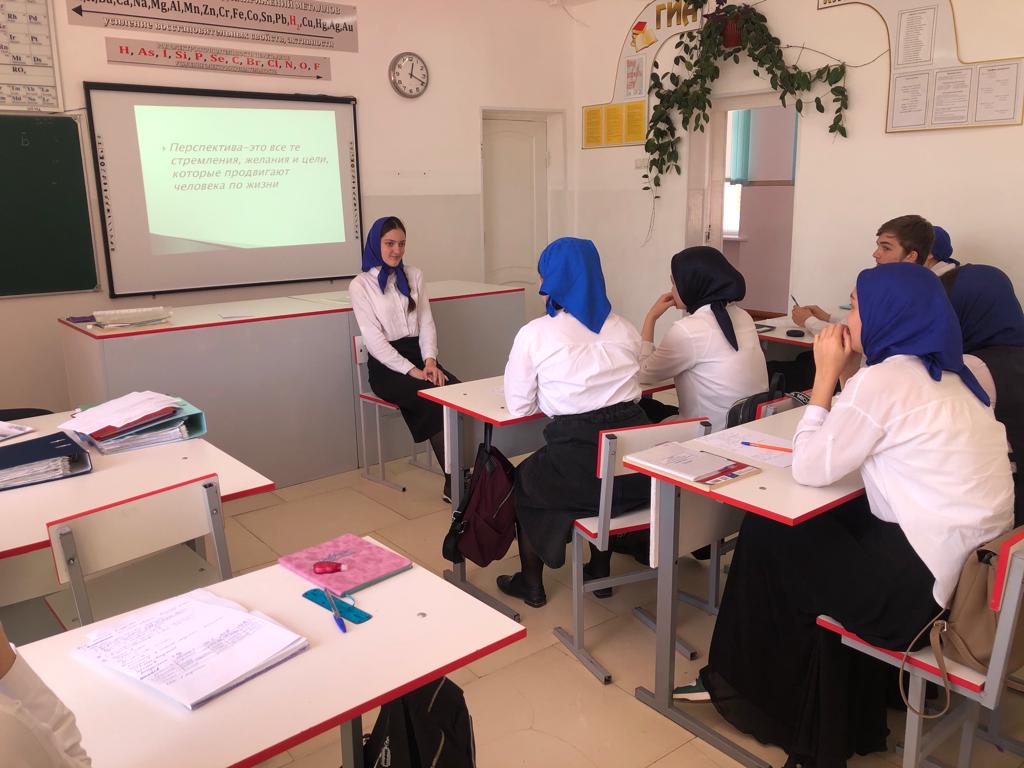 20.04.2022В 9-11 классах прошли классные часы, информационно-тренинговые занятия "Перспектива", с выполнением упражнений "Волшебное зеркало", "Мои цели", "Преграды и канавы". Данная работа направлена на привлечение внимания учащихся к проблеме планирования своей жизни, необходимости быть честным с самим собой, не бояться желать того, что пока недоступно, что именно ответственность и самостоятельность превращают виденье будущего в перспективы - реальные ресурсы и способности человека.
