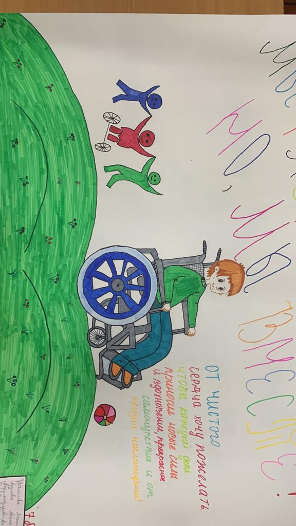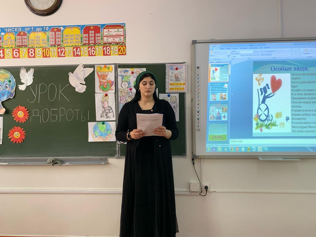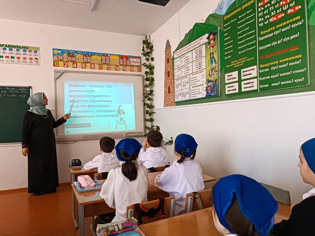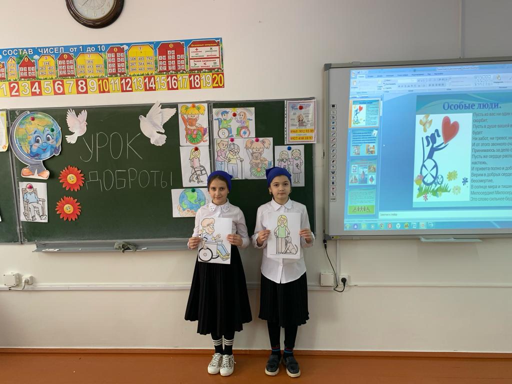 мероприятий ко Дню инвалида в период с 27 ноября по 4 декабря в МБОУ СОШ п. Долинский Грозненского муниципального района» были проведены классные часы, посещение учащихся на дому, конкурс рисунков.