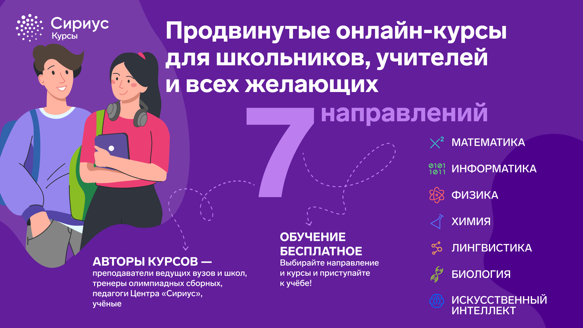 Региональный центр выявления и поддержки одарённых детей «Ахмат» ГБНОУ «РКОиДО «Квант» информирует о возможности круглогодичного бесплатного дополнительного образования на платформе Сириус.Курсы.
