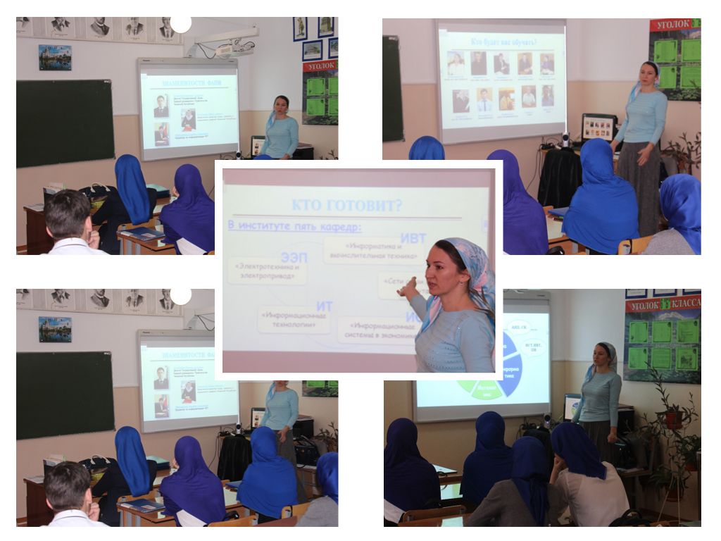 01.12.2017Согласно плану по профориентационной работе прошла встреча уч-ся 11 кл. Со Старшим преподовательем кафедры "Информатика и вычислительная техника" Грозненског Государственного Нефтяного Технического Университета Абдулаевой С.И.