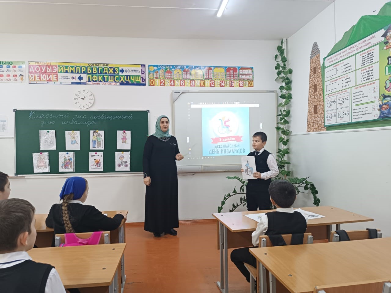 В рамках декады инвалидов 4 декабря 2024 года в МБОУ "СОШ п. Долинский" были проведены классные часы. Классный час в 4 «в» классе «Доброта спасёт мир».