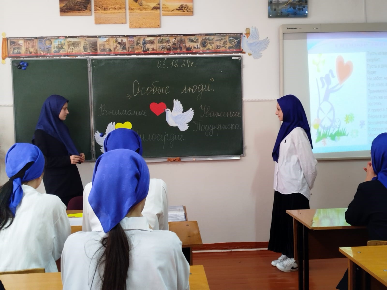 В рамках декады инвалидов 4 декабря 2024 года в МБОУ "СОШ п. Долинский" были проведены классные часы. Классный час в 9 «а» классе «Особые люди».
