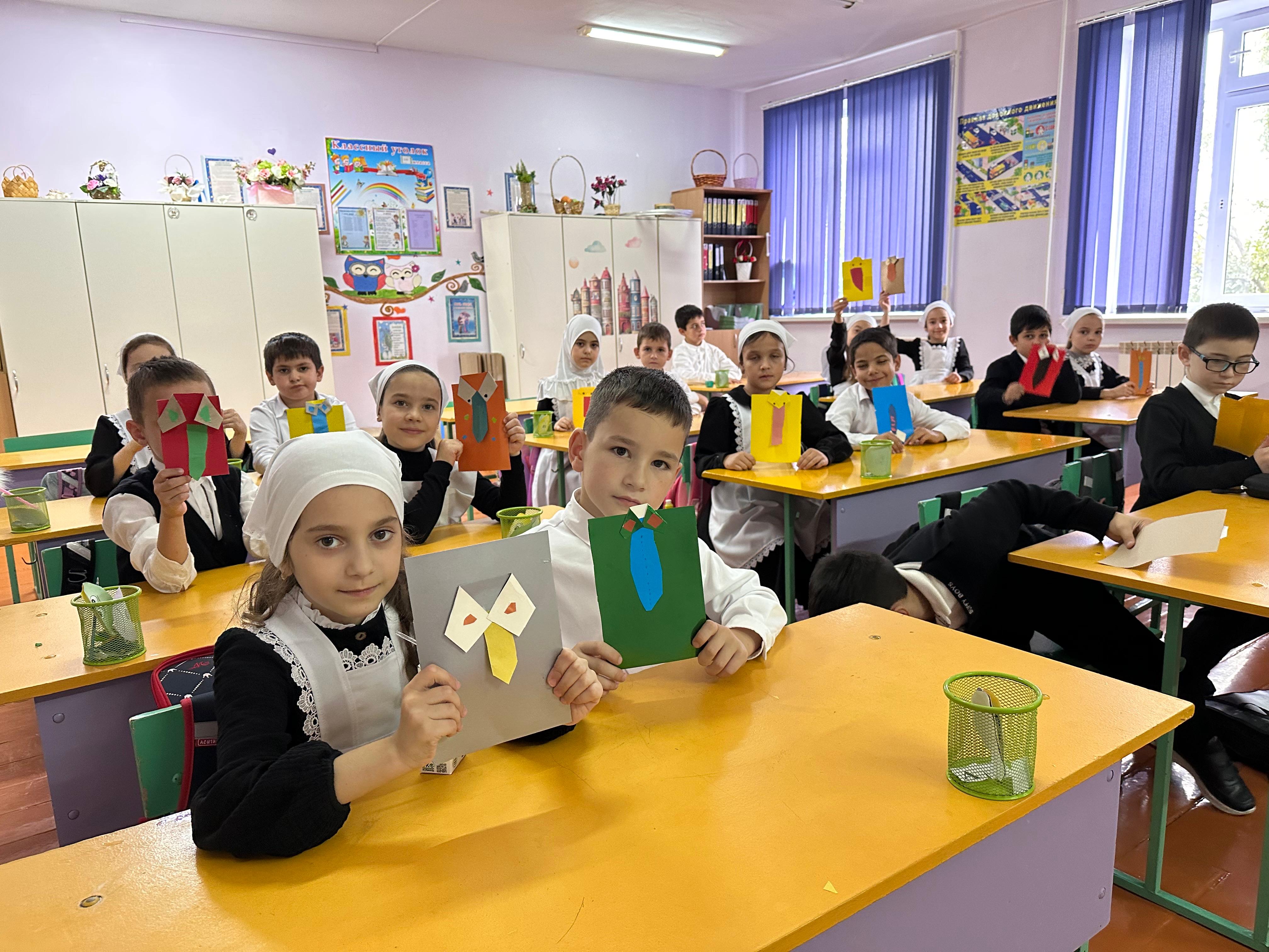 Врамках недели посвященной 19 октябрю- Дню пап в России В МБОУ" СОШ с.Виноградное" ученики младших классов провели Мастер класс по изготовлению открыток для папы.