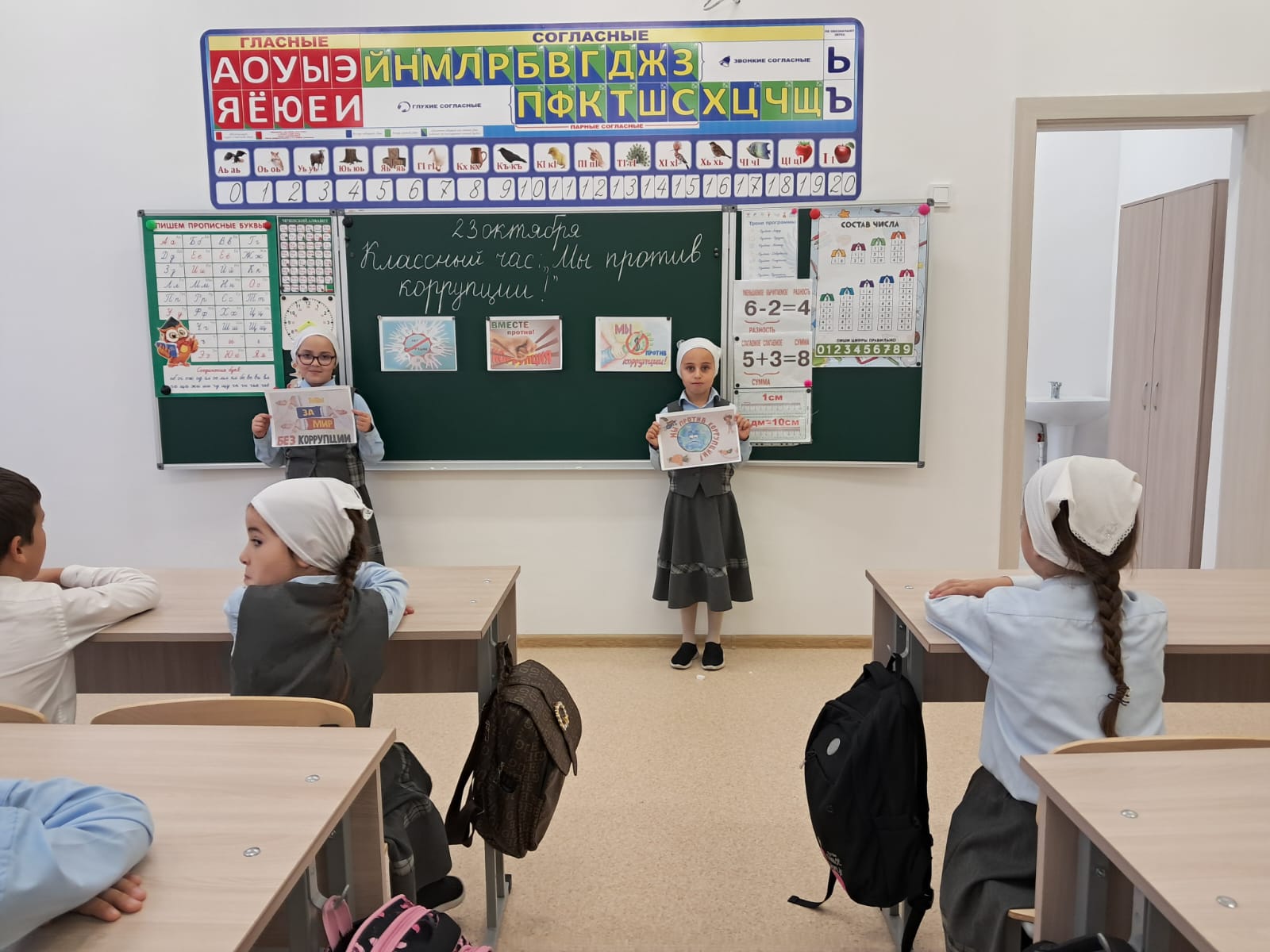 В МБОУ " Новотерская НОШ имени М.Амаева " прошли классные часы на тему:" Нет коррупции! "