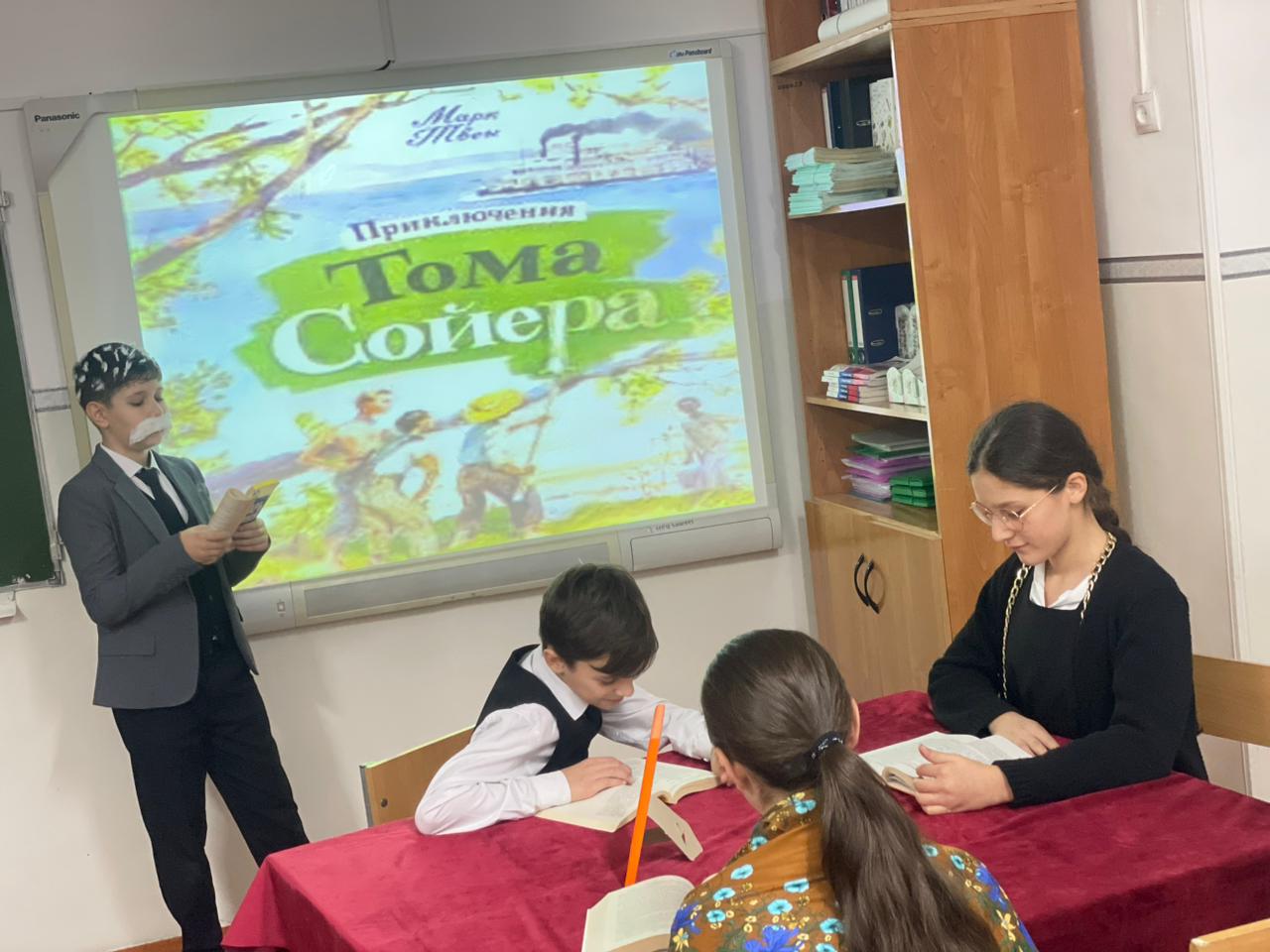 28.11.2025г провели литературную переменку посвященную творчеству писателя Марка Твена «Марк Твен и его озорные герои», приняли участие в мероприятии учащиеся 6 класса .
